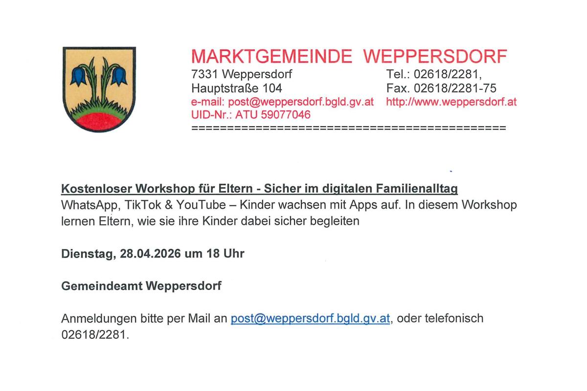 Anmeldungen bitte per Mail an post@weppersdorf.bgld.gv.at, oder telefonisch 02618/2281!