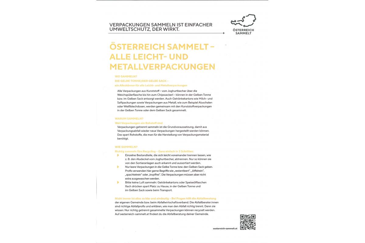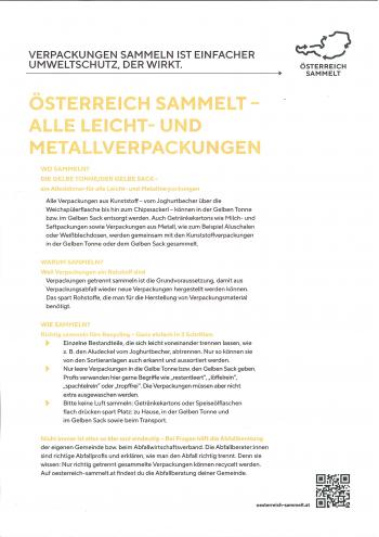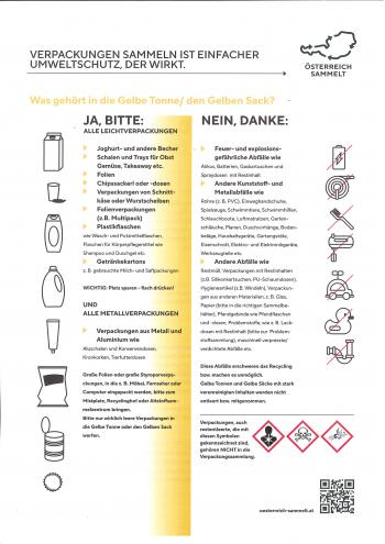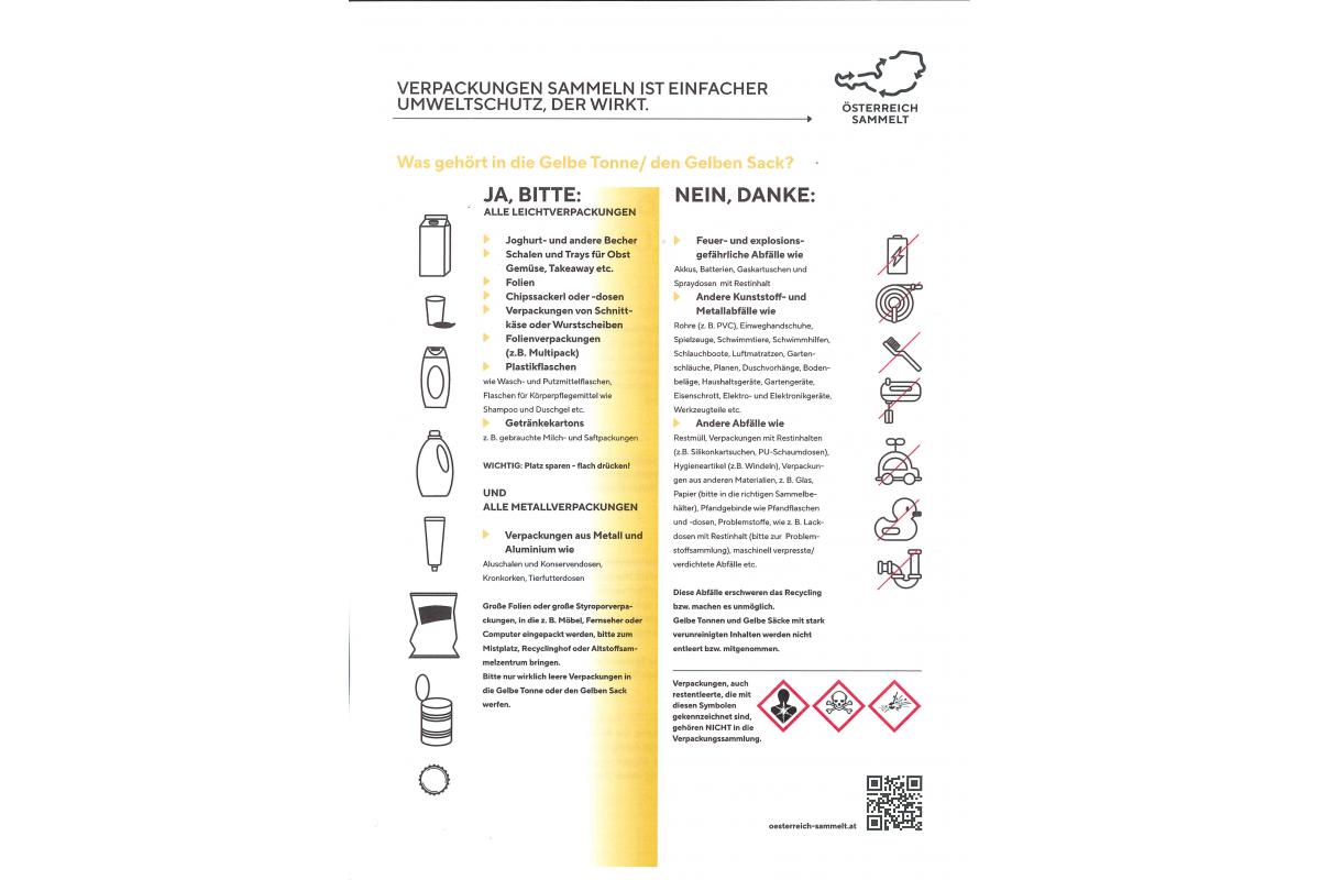 Am 1. Jänner 2025 wurde österreichweit ein neues Einwegpfandsystem und die Mixsammlung eingeführt. Im Burgenland werden nun Kunststoff- und Metallverpackungen gemeinsam im Gelben Sack oder der Gelben Tonne entsorgt.