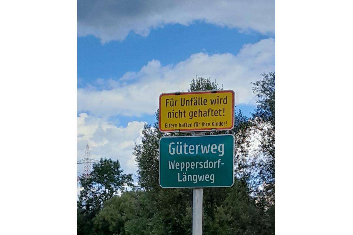 2. Verkehrsschild: Für Unfälle wird nicht gehaftet