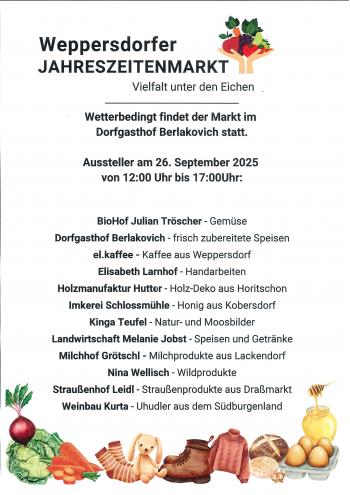 Am Freitag findet der dritte Jahreszeitenmarkt in diesem Jahr statt, wetterbedingt diesmal im