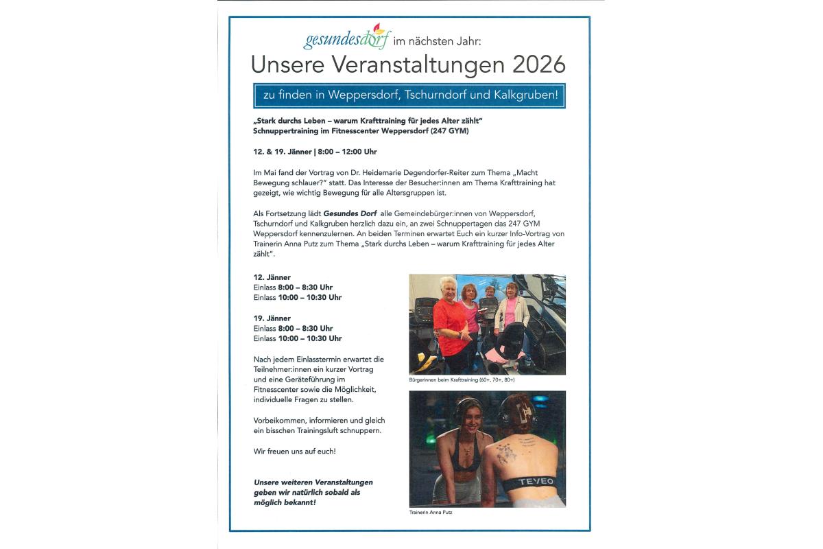 12.01. und 19.01.2026 Schnuppertraining im Fitnesscenter Weppersdorf (247 GYM)