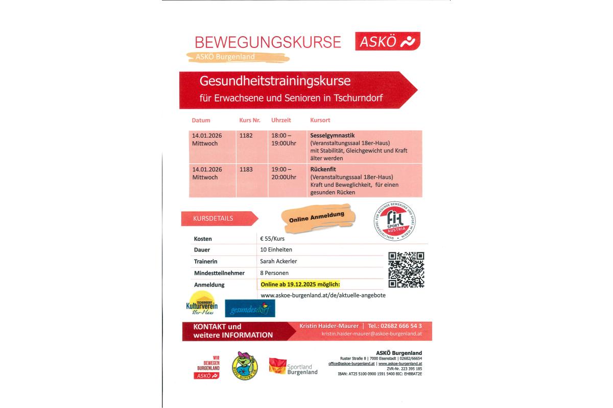 14.01.2026 Start zweier Bewegungskurse ASKÖ Burgenland im 18er-Haus, Tschurndorf