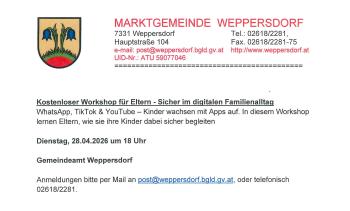 Anmeldungen bitte per Mail an post@weppersdorf.bgld.gv.at, oder telefonisch 02618/2281!